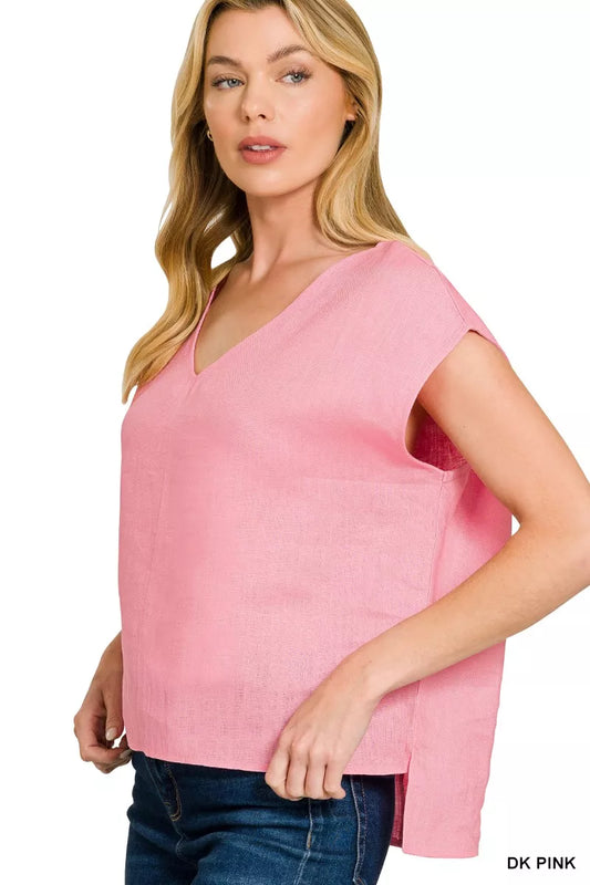 Zenana Linen V-Neck Sleeveless Top